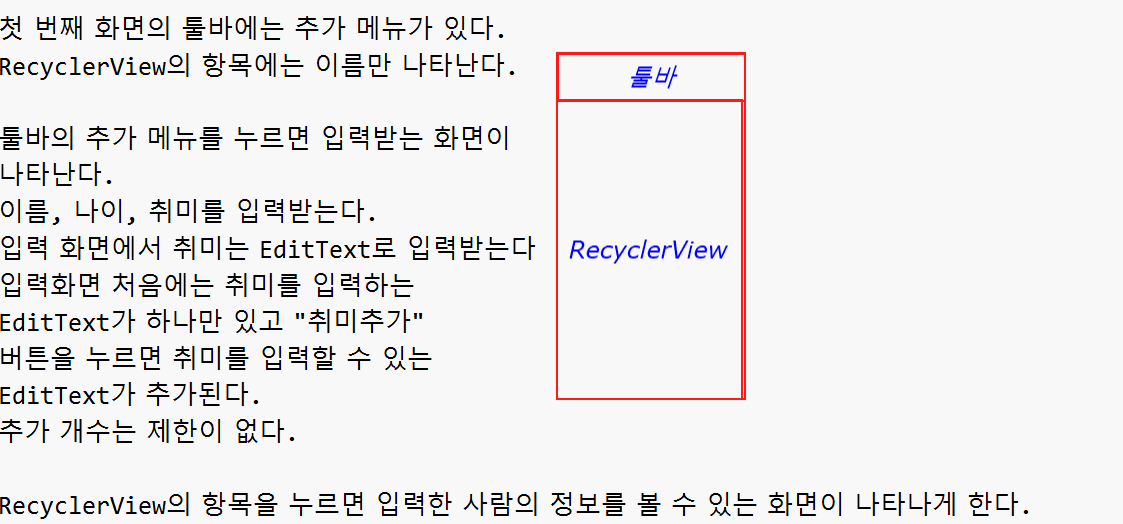 저의 경우 오늘 배운 내용과 프래그먼트를 이용하여 해당 문제를 작성해 보았습니다.유효성 검사는 하지 않았습니다.