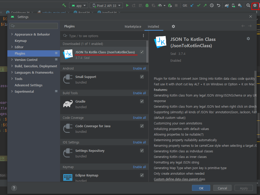 안드로이드 스튜디오에서 JSON을 분석하여 kotlin 의 data class을 만들어 주는 플러그인이 존재합니다.