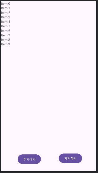 binding.run { foodOrdersRecyclerview.adapter = adapter foodOrdersRecyclerview.layoutManager = LinearLayoutManager(applicationContext) addButton.setOnClickListener { val newList = adapter.currentList.toMutableList() newList.add( FoodOrder(newList.last().orderId + 1, "추가된 음식${newList.last().orderId + 1}", 0), ) adapter.submitList(newList) } removeButton.setOnClickListener { val newList = adapter.currentList.toMutableList().subList(0, adapter.currentList.size - 1) adapter.submitList(newList) } }지금 까지의 코드를 잘보면 currentList를 직접 수정하면 안되나? 라는 생각이 들 수 도 있습니다.